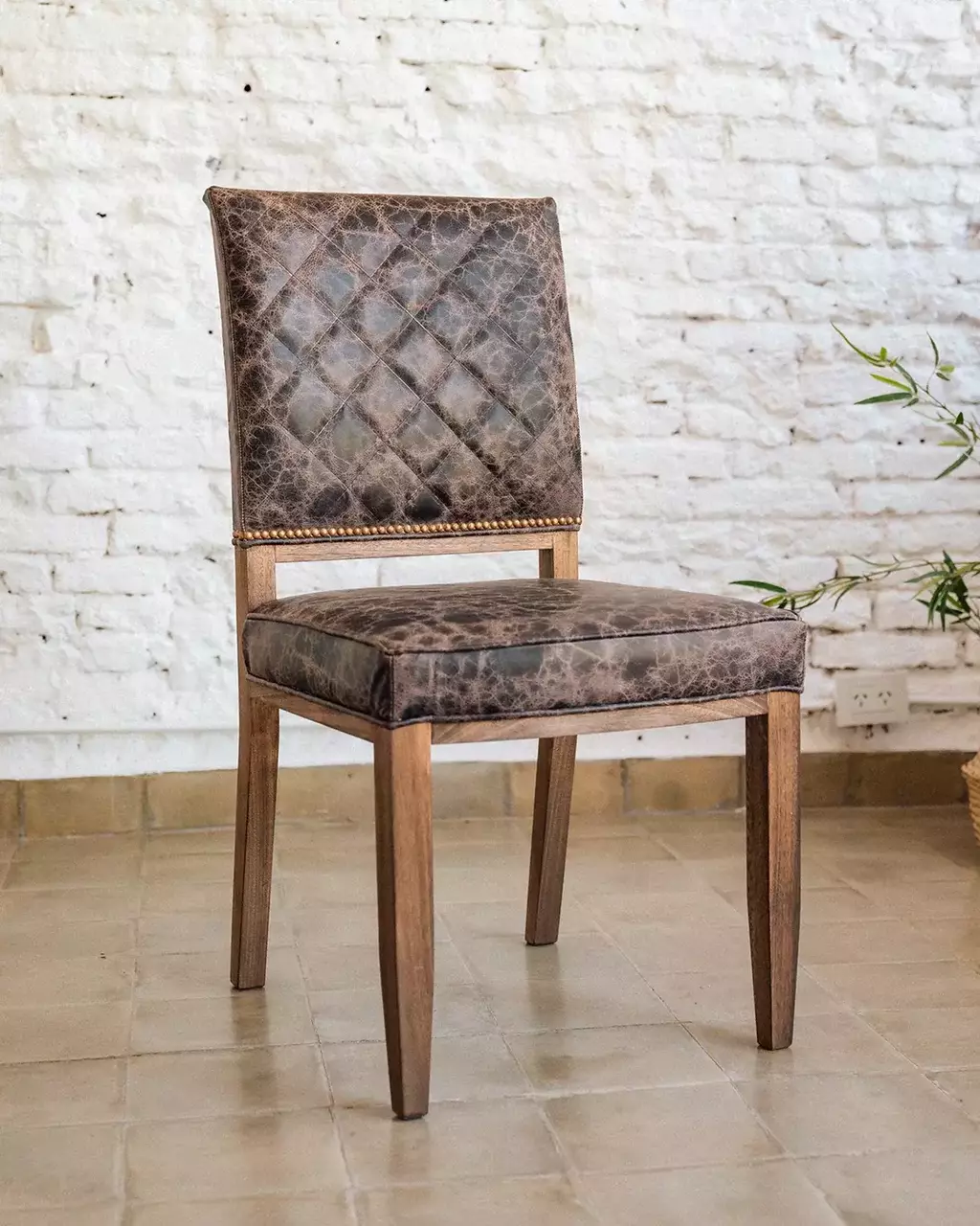 Silla Becca: Sofisticación y Durabilidad con Cuero Vacuno y Estructura de Madera