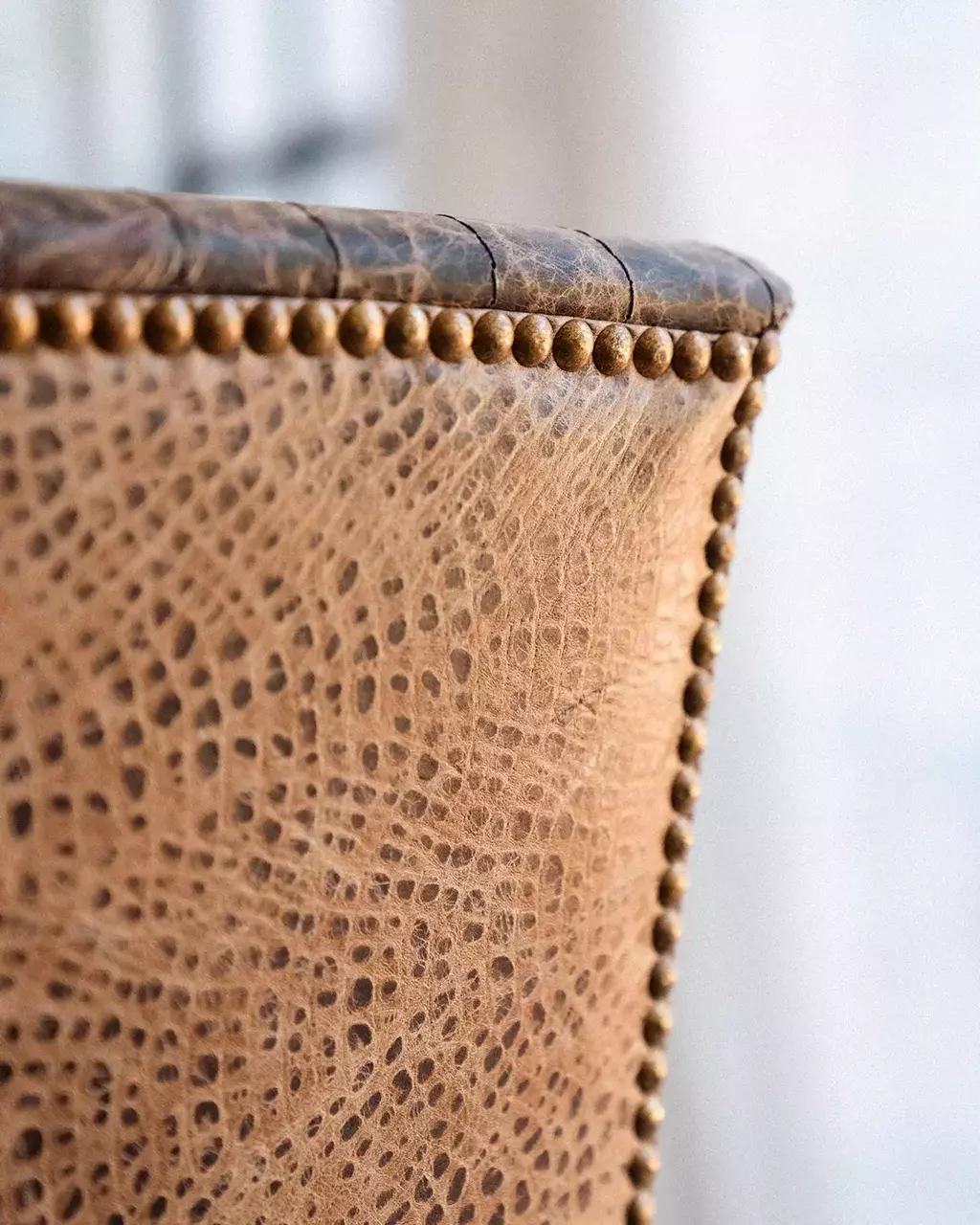 - Tapizado en cuero vacuno natural, suave, resistente y con un acabado premium que realza la belleza de la pieza.